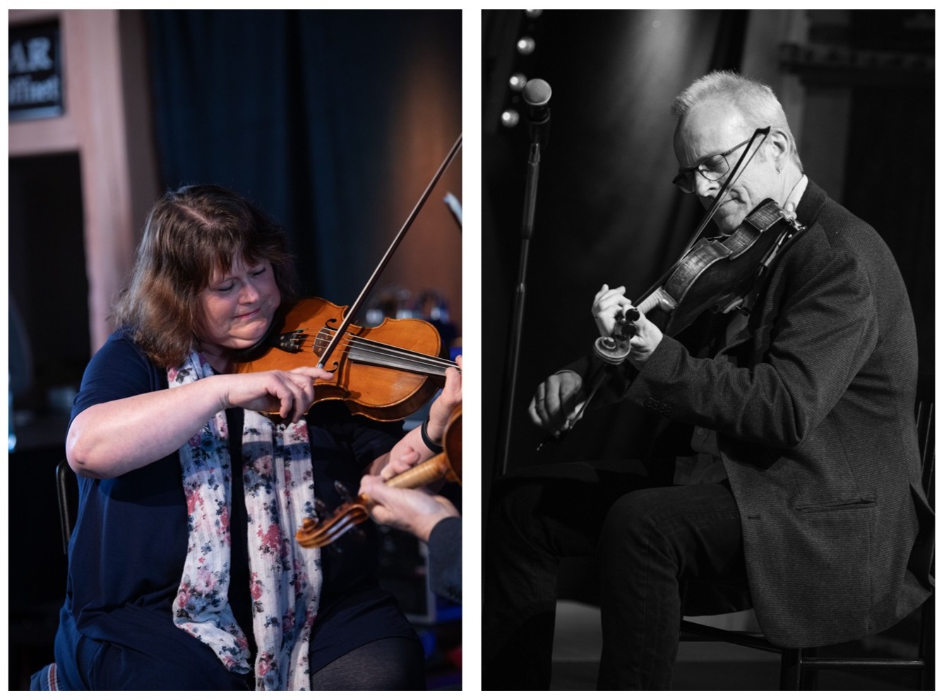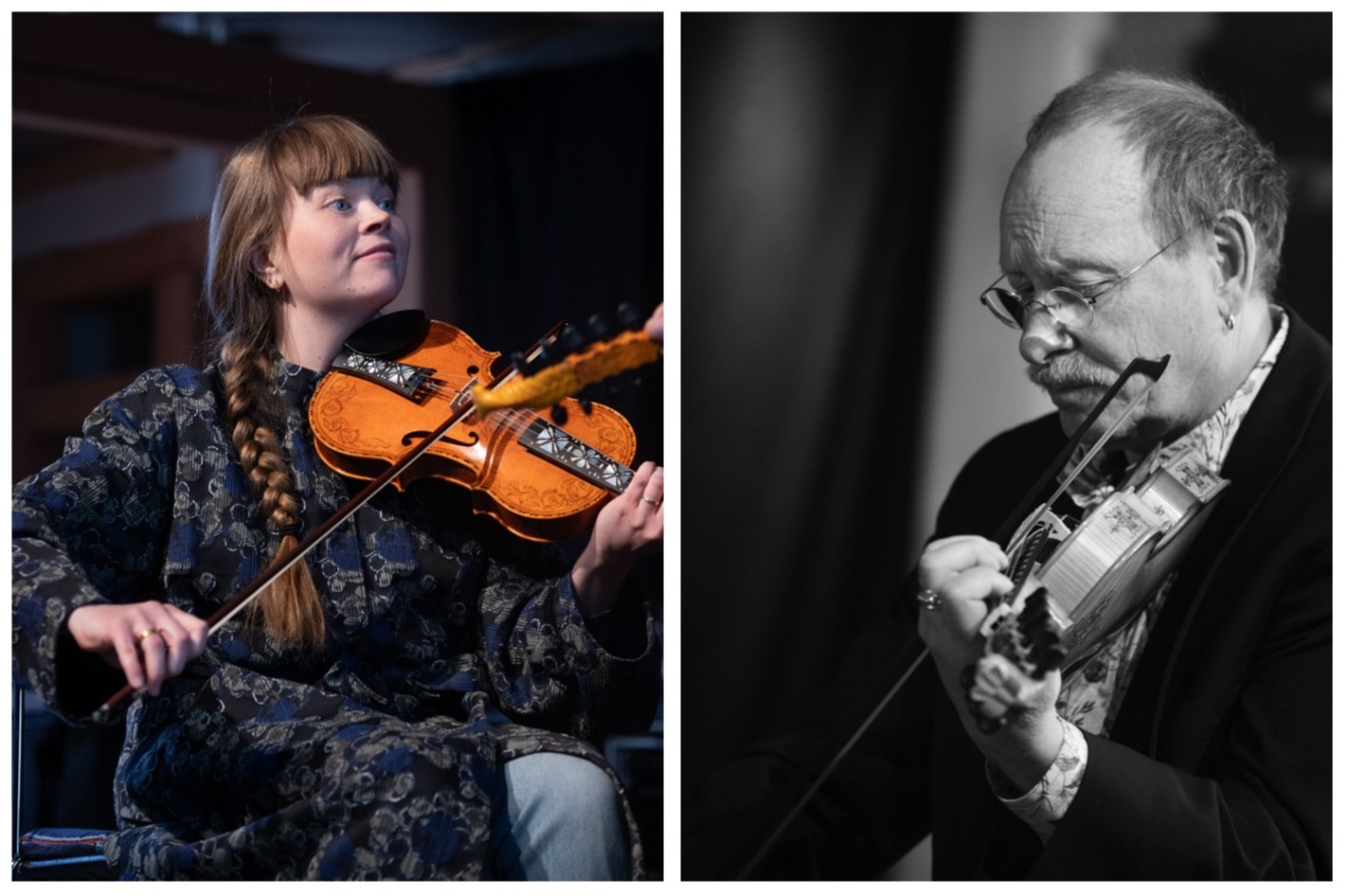 Mats Edén zählt schon seit den 1970er Jahren zu den prominentesten Musikern in Schweden auf dem Gebiet der traditionellen Musik. Er wirkt als Geigenspieler, Komponist und Lehrer. An diesem Musiknachmittag mit Guro Kvifte Nesheim hatte er die Rolle des Begleiters inne und setzte dabei verschiedene Geigentypen ein. Guro kommt ursprünglich aus Norwegen, hat aber in Göteborg eine Folkemusikk-Ausbildung absolviert. Seitdem hat sie bei verschiedenen Projekten mitgearbeitet und Musik von traditionellen Stücken bis hin zu freier Improvisation produziert. Neben dem Duett mit Mats spielt sie auch in anderen Besetzungen. Guro hat an diesem Abend nicht nur die Melodiestimme hervorragend umgesetzt, sondern auch die informative und sehr humorvolle Moderation übernommen.